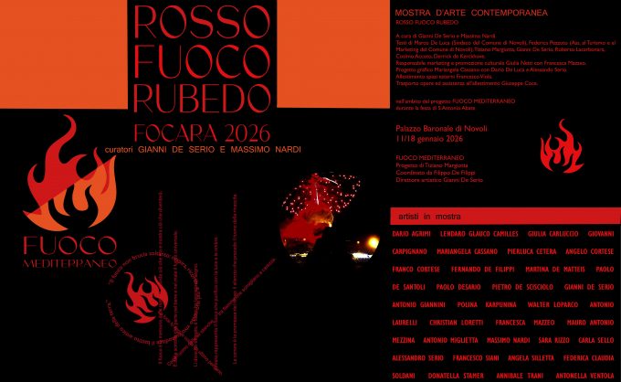IL FUOCO DELL’ARTE, TRA SACRIFICIO E METAMORFOSI” MOSTRA D'ARTE CONTEMPORANEA AL PALAZZO BARONALE DI NOVOLI IN PROGRAMMA ALLA FÒCARA 2026…