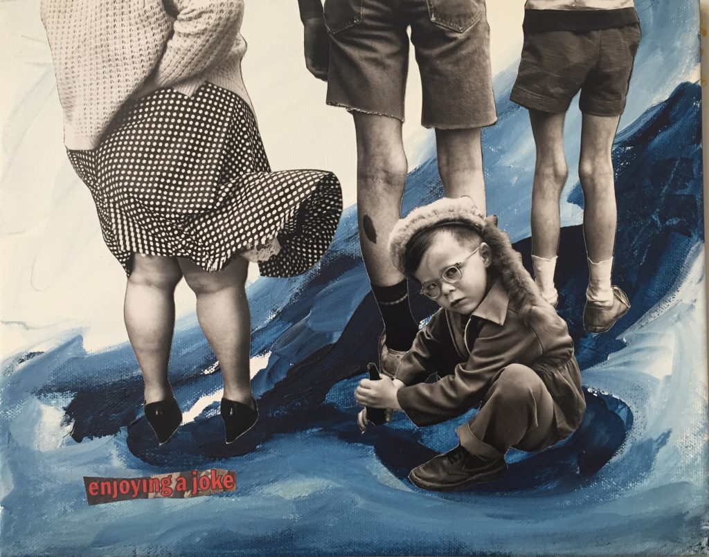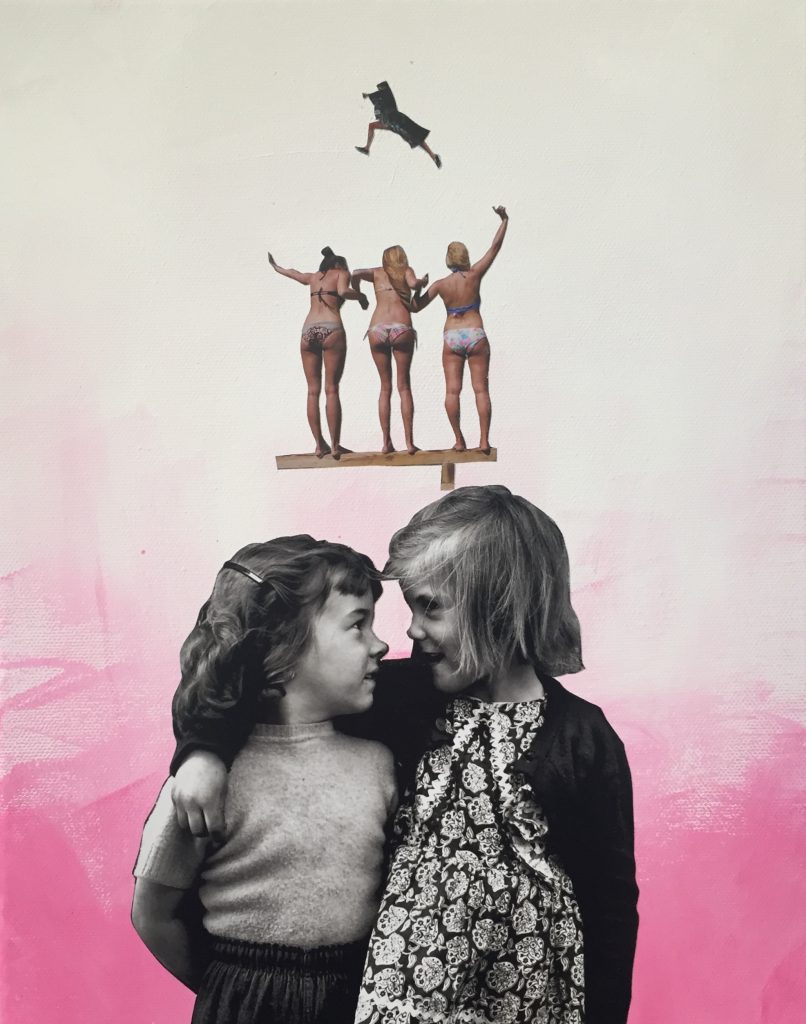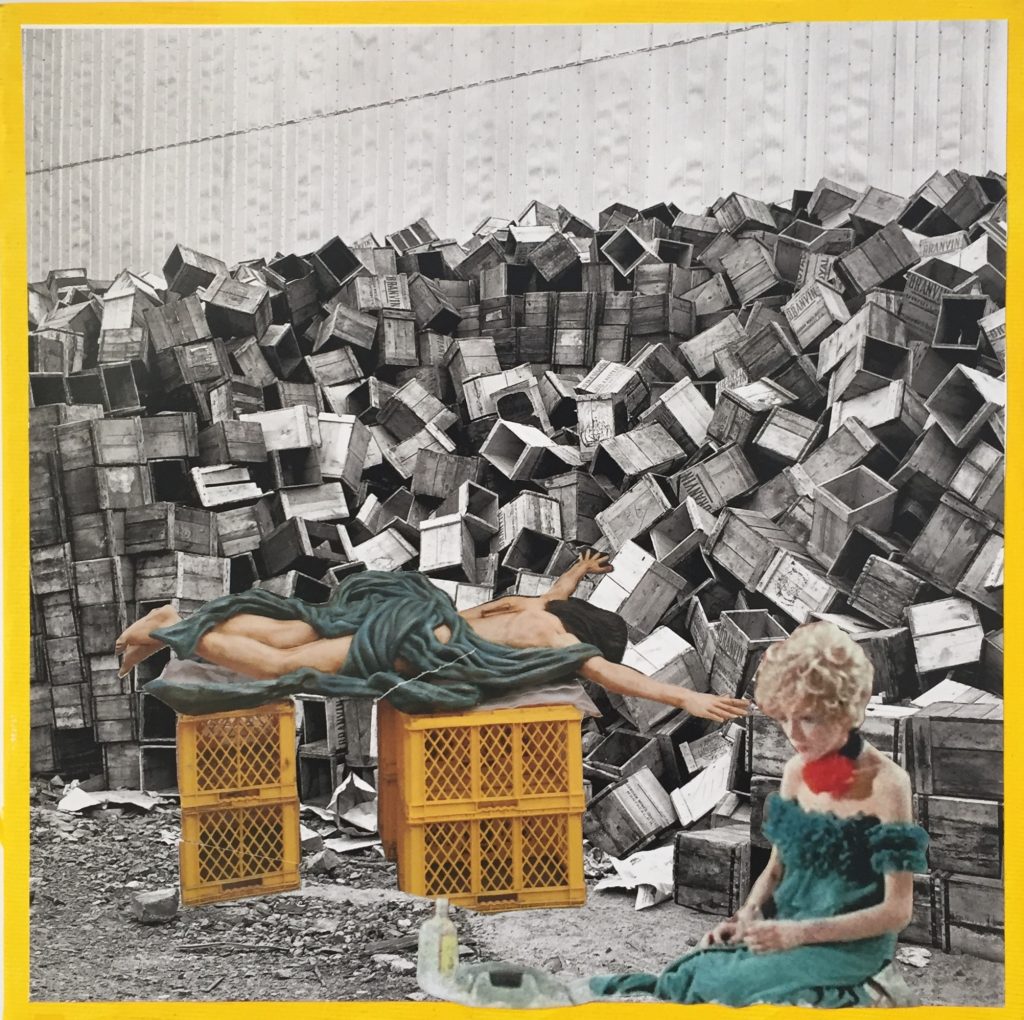 Daniela Di Lullo lavora con pittura e collage creando realtà inedite, specchi perplessi del nostro quotidiano contemporaneo.