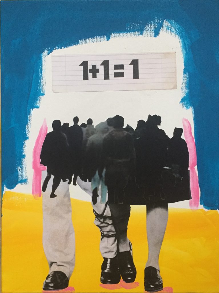 1 + 1= 1 è una mostra che racconta del tentativo di superare il dualismo e l’antagonismo propri alla condizione umana, attraverso un lavoro di sintesi fra elementi, soggetti e tecniche diverse, apparentemente opposte.