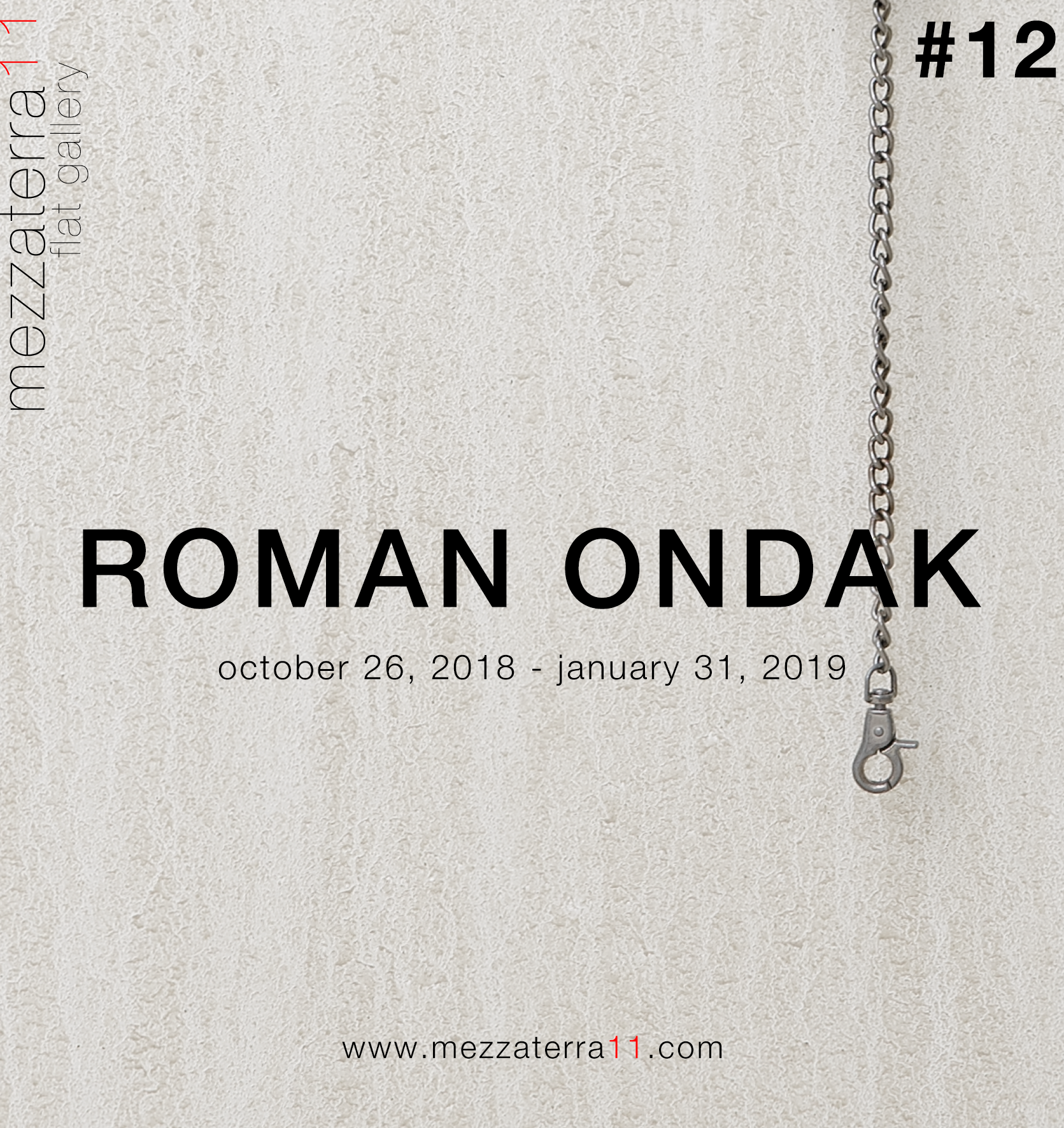 mezzaterra11 - flat gallery ha il piacere di annunciare una mostra personale dell'artista slovacco Roman Ondak (nato nel 1966), che per l’occasione presenta "Adam's Keys" (2016). Attingendo da esperienze di tutti i giorni, oggetti trovati e situazioni che sono spesso legati alla sua storia personale, Ondak crea margini di sottili connessioni filosofiche e narrazioni tra realtà e rappresentazione. La maggior parte delle opere di Ondak invita gli osservatori ad un coinvolgimento attivo, dove l’interazione tra il pubblico e il suo lavoro svolge solitamente un ruolo chiave nel ri-porre la loro attenzione quotidiana.