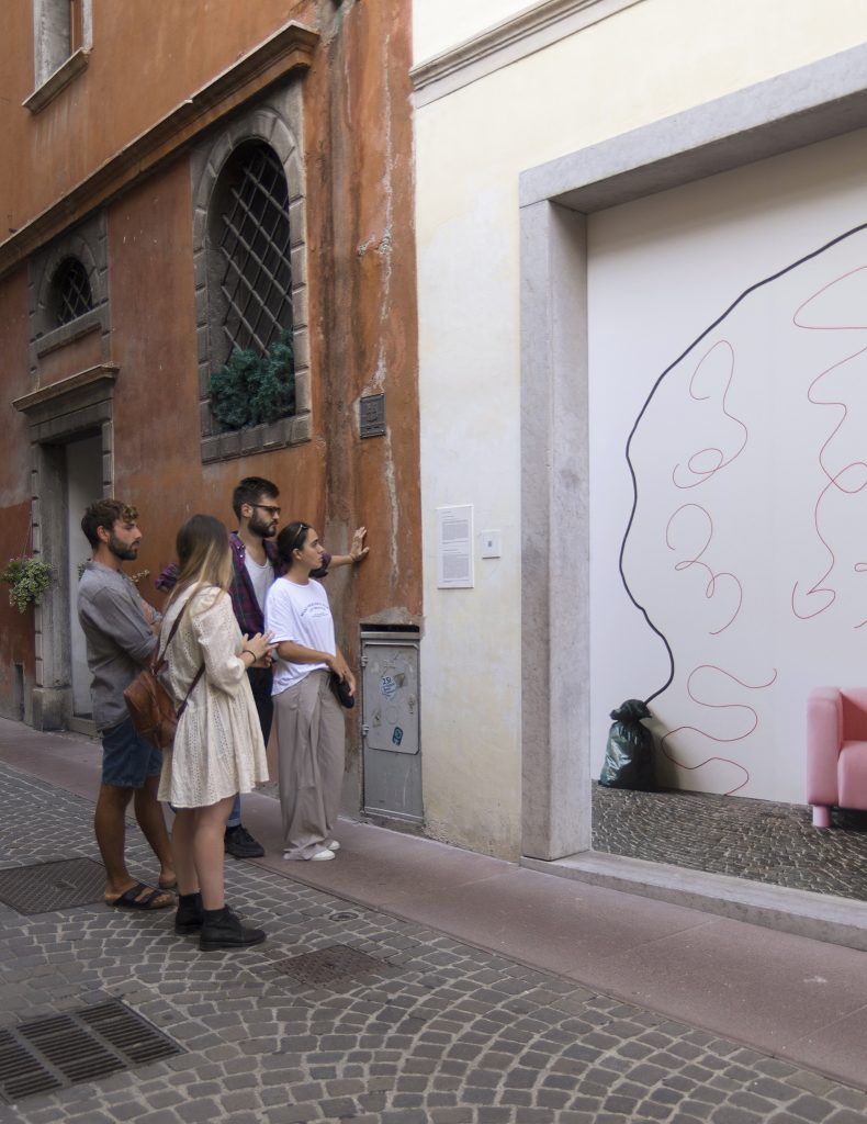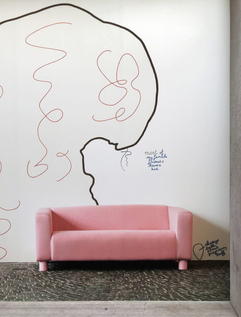mezzaterra11 – flat gallery è lieta di annunciare una mostra personale di Lily van der Stokker (nata a Den Bosch, Paesi Bassi, 1954). van der Stokker è nota internazionalmente dai primi anni Novanta per i suoi grandi e giocosi wall painting dai colori pastello e fluorescenti con tipografia in grassetto nel contesto del femminismo. Prendendo in prestito motivi floreali, pattern ripetitivi a quadri e nuvole spumeggianti, spesso combinati con parole argute e vocabolari visivi della cultura pop commerciale, l’artista crea seducenti installazioni di pittura murale – decorative, piatte e spiritose – come un distinto soliloquio, sfidando le convenzionali e repressive aspettative sociali di essere una donna e un artista. Nonostante la gravità dell’argomento, van der Stokker lo dipana allegramente in forma di disegni impulsivi, linee fumettistiche, mobili funzionali e grafia vivace, accompagnati da enormi e colorati dipinti murali – organiche, domestiche e amichevoli creature – che in qualche modo ci mettono a nostro agio. Il lavoro di van der Stokker fa suoi gli elementi visivi degli scarabocchi di una ragazza adolescente che solleva le cosiddette domande adulte – emotive, personali e pratiche – difficilmente trattate nelle opere d’arte, in generale. L’artista, d’altronde, porta all’interno della sfera pubblica dell’arte temi apparentemente inappropriati in modo esuberante e schietto con il suo senso di ottimismo, come quando ha spensieratamente detto: “Sto decorando il mondo dell’arte come potrebbe farlo una brava casalinga”. Per questa occasione van der Stokker presenta “Female Friends” (2003), adattamento per mezzaterra11 – flat gallery, insieme al testo scritto dall’artista.
