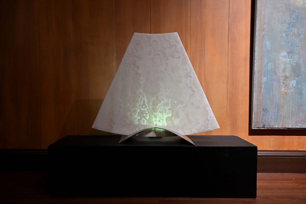 La creativa Palmalisa Zantedeschi partecipa con alcune delle opere della collezione “Incanto”, quali Chiffon, Duo, Ikebana Small Earth, Stelo, in dialogo con i dipinti di Leng Hong. Le opere, leggere, sembrano sospese fra materia e luce grazie alla sottrazione calibrata della materia che diventa impalpabile e si riduce a forme quasi prive di peso e dove la luce gioca in sincronia con processi geologici cristallizzati nel tempo.
