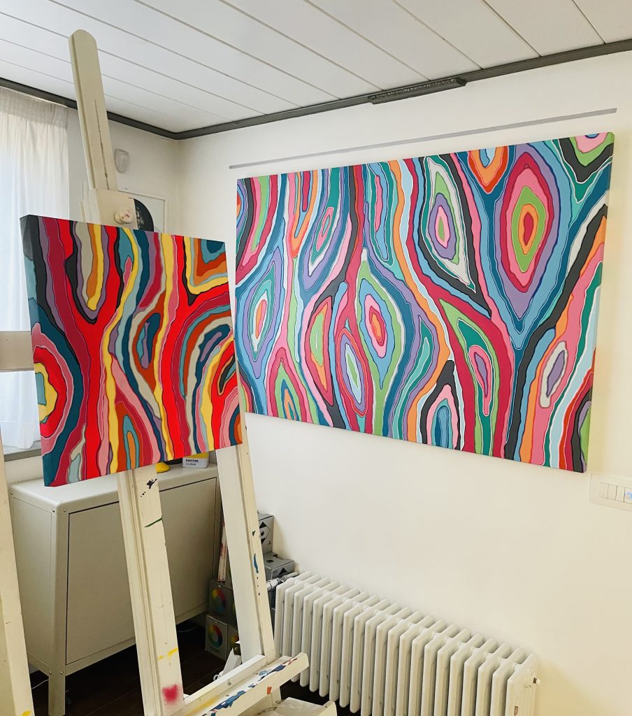 Attraverso i suoi studi artistici, prima al liceo e poi in Accademia, l’artista ha assorbito la storia dei grandi maestri dell’arte e si è avvicinata a numerose tecniche, e, spinta da un costante desiderio di sperimentare ed esprimersi, è riuscita a creare un proprio personale linguaggio che la rende riconoscibile. Numerose, infatti, le varietà di opere presenti in mostra, dalle tele dipinte con spray ai cartoni realizzati con colori ad olio, dagli acquerelli alle ceramiche.