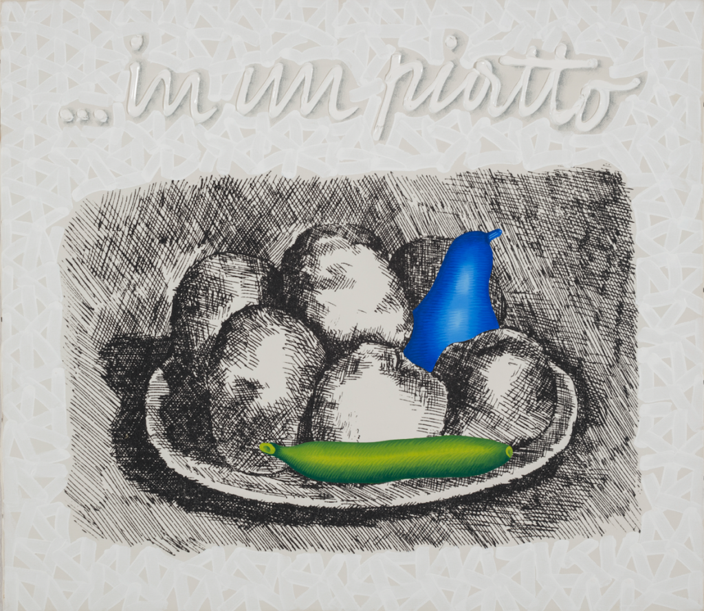Nella seconda sala una natura morta su tela del 1972 - magistrale rivisitazione pop di una tipica incisione di Giorgio Morandi - ci accoglie per poi rivelarsi come il fulcro espositivo di 36 piccole opere appartenenti al ciclo "Ristoria prioritaria" del 2004. Qui vediamo davvero "Tutto Pozzati", raccontato dallo stesso artista con uno sguardo retrospettivo. La sala è anche un omaggio al compianto gallerista spezzino Alberto Rolla, morto nel 2015, grazie al quale queste “opere cartolina” furono ideate e realizzate.