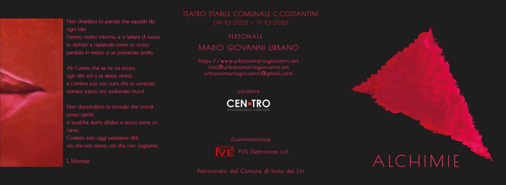 torna ai comunicati stampa Alchimie Arte Teatro Stabile Comunale di Isola del Liri, Isola del Liri, FR, 03036, Italia 09/10/2021 - 17/10/2021 Mostra di pittura d'arte contemporanea Scarica il comunicato