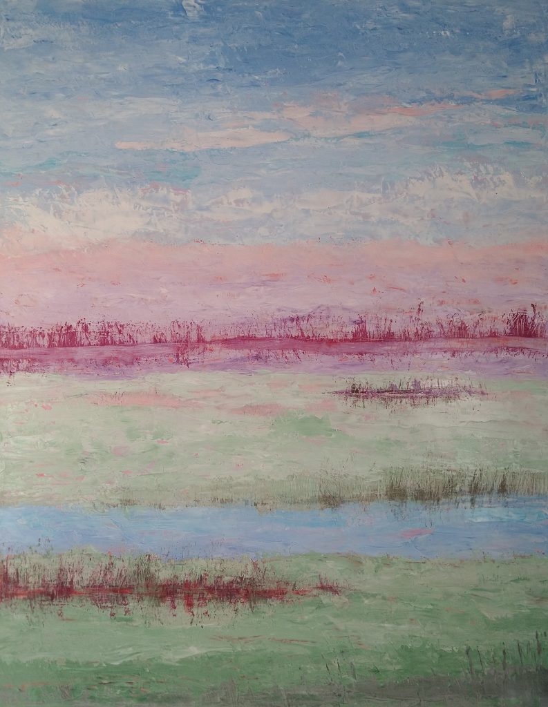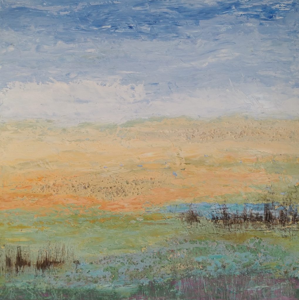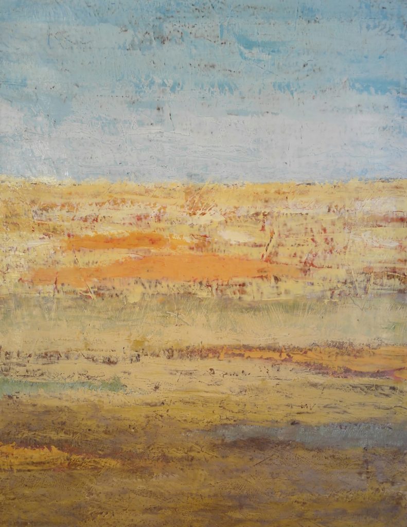 Alessandra Sanvito è una artista informale, tuttavia nelle sue opere astratte alcuni principi seguiti nel processo compositivo possono indurre il fruitore a interpretare i suoi quadri come paesaggi. Innanzitutto l’utilizzo della sezione aurea per dividere lo spazio secondo linee orizzontali parallele, la più alta delle quali spesso può ricordare proprio la linea dell’orizzonte. Poi anche le ampie campiture cromatiche sembrano talvolta alludere ad ampie distese di campi. Da questo punto di vista, se quello che osserviamo fossero davvero paesaggi, si tratterebbe di paesaggi “scabri ed essenziali”: brulle brughiere, tundre desolate e deserte. Nessun albero, nessuna casa, nessuna presenza umana o animale.