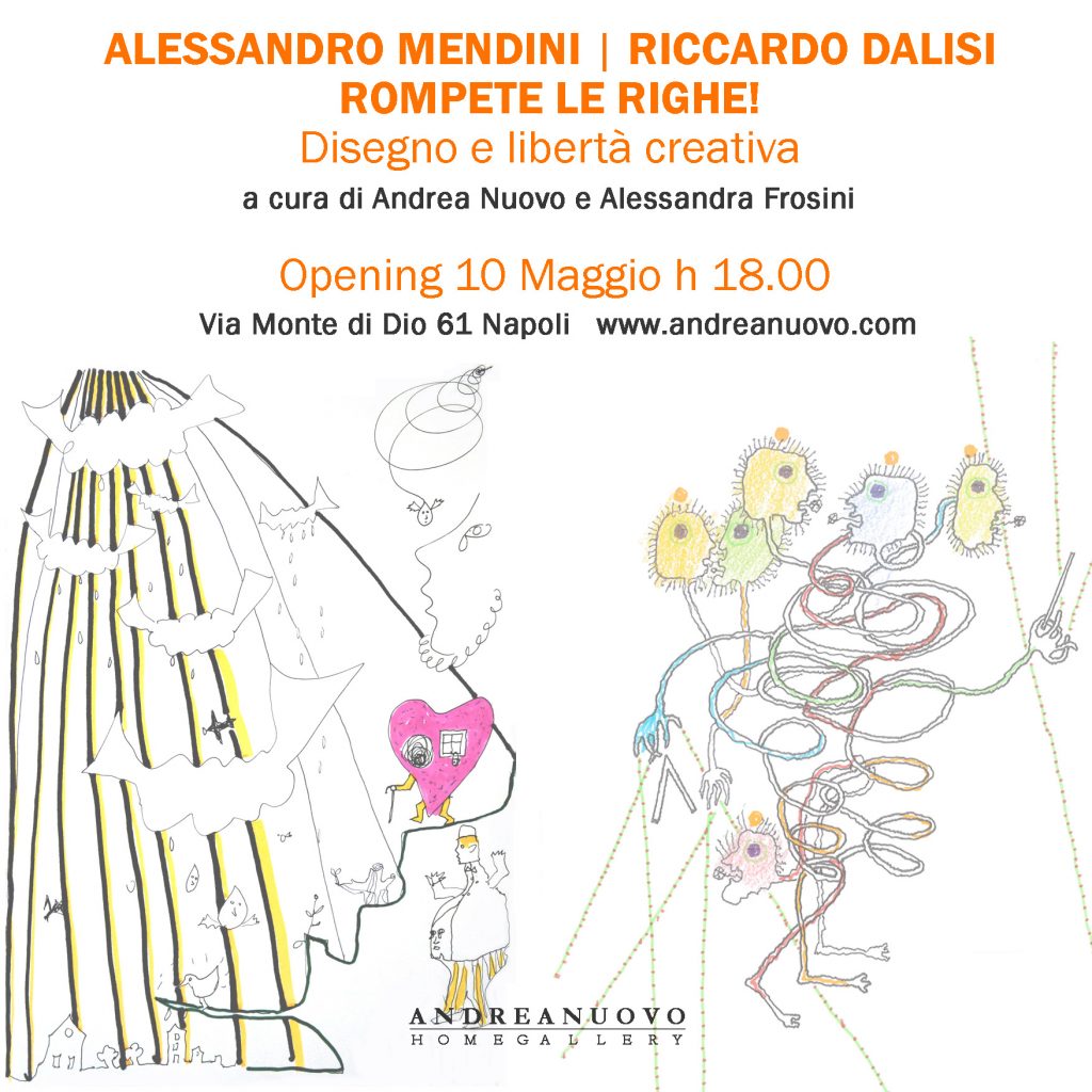 AndreaNuovoHomeGallery presenta da sabato 11 maggio 2019 la mostra dal titolo Rompete le righe! Disegno e Libertà creativa, un progetto speciale dedicato ad Alessandro Mendini e Riccardo Dalisi, realizzato in collaborazione con Studio Alessandro Mendini, Elisa e Fulvia Mendini e Archivio Riccardo Dalisi.