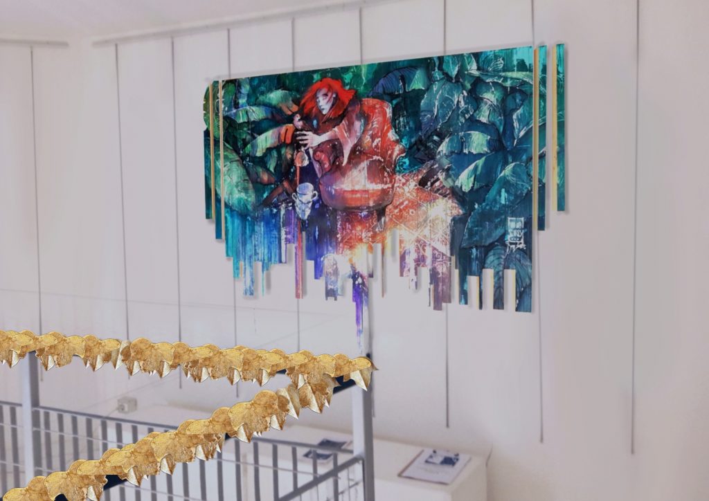 Un linguaggio visivo giovane e naturalmente contaminato, che si rivolge con spontaneità ai diversi medium della pittura e della grafica legandoli in una esperienza artistica immersiva e partecipativa.
