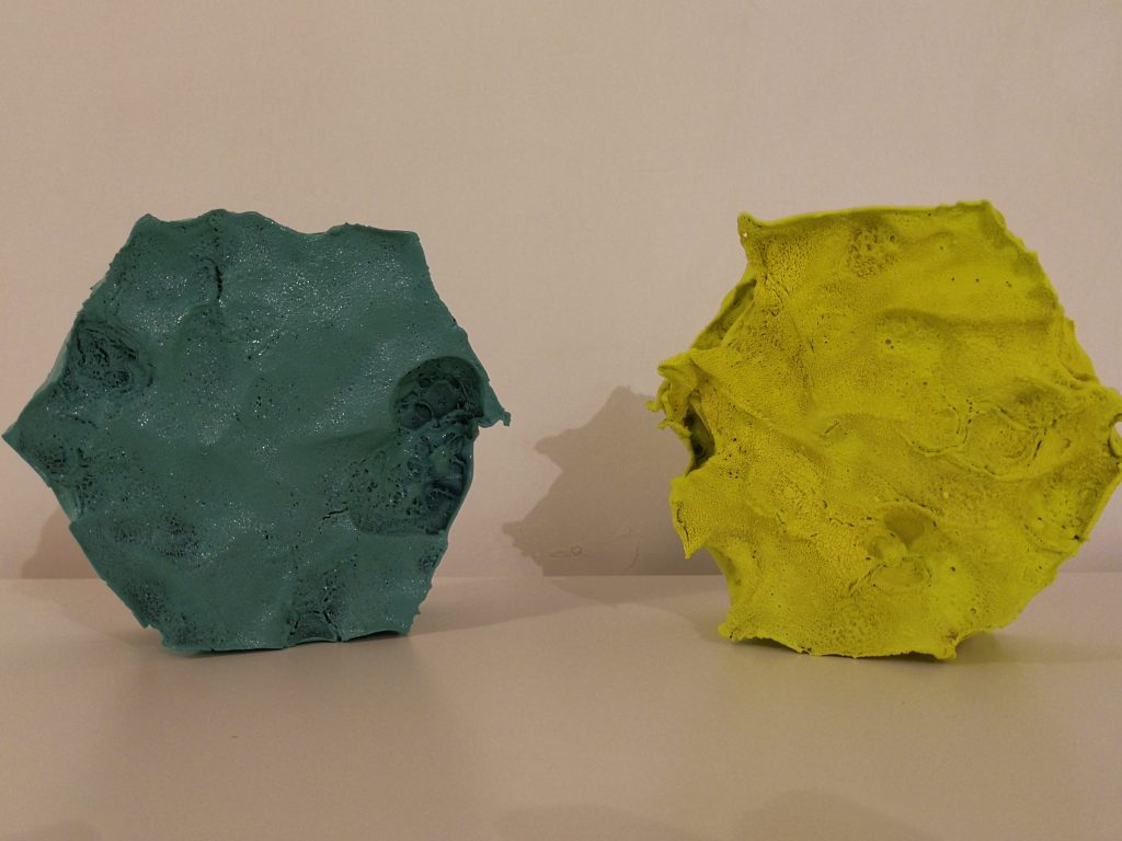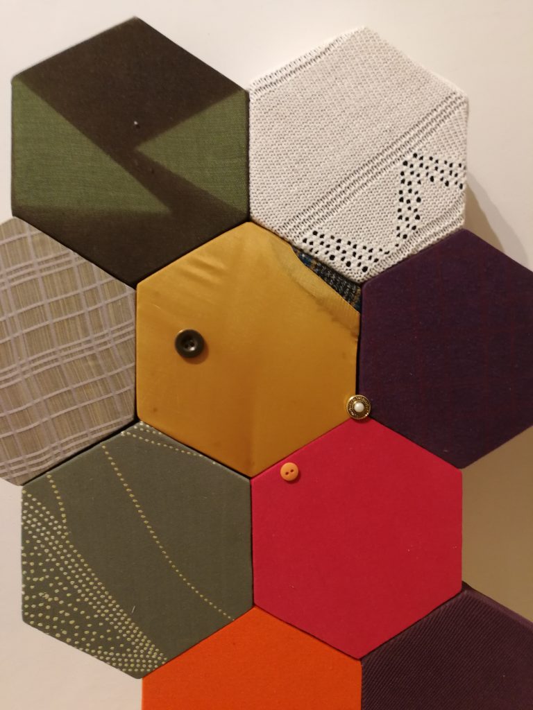 Elemento dopo elemento. Una sequenza che si moltiplica attraverso la struttura modulare esagonale. Una ricerca quella di Antonello Spadafora che utilizza il modulo esagonale per riuscire a comporre delle storie che possono ripetersi ogni giorno all'infinito.
