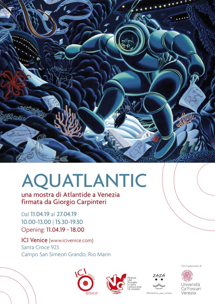 Aquatlantic una mostra di Atlantide a Venezia firmata Giorgio Carpinteri nasce dall’idea di esporre le tavole originali della nuova graphic novel Aquatlantic, in concomitanza al Venezia Comics e grazie alla collaborazione tra la fumetteria ZAZA’ art comics books e l’associazione ICI Venice - Istituto Culturale Internazionale.