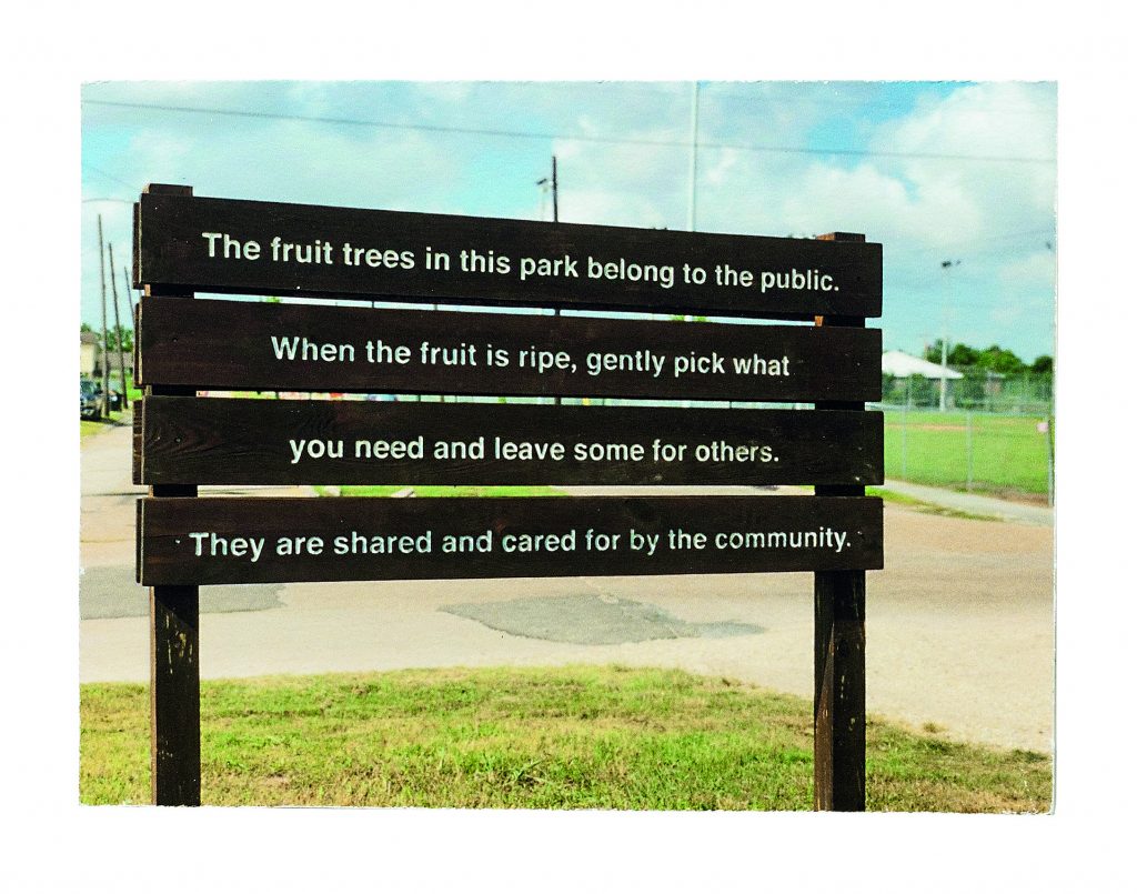 Con all’attivo significative esposizioni personali negli Stati Uniti (Los Angeles County Museum of Art e Portland Art Museum), a Londra (Victoria and Albert Museum) ma anche in Italia (Manifesta 12, Palermo), la pratica artistica dei Fallen Fruit (David Allen Burns e Austin Young) ha avuto inizio con la mappatura degli alberi da frutto dei terreni pubblici di Los Angeles ed è poi proseguita con progetti pubblici in serie, installazioni site-specific e happening in tutto il mondo. I loro progetti e le loro opere (coloratissime e allegre: materiale principale la frutta di ogni parte del mondo) mostrano come sia possibile reinventare le interazioni pubbliche in uno spazio urbano.