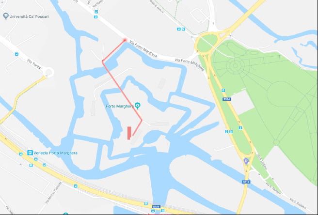Il Forte Marghera che ospita un padiglione della Biennale alle spalle dello spazio e tre padiglioni dei Musei Civici di Venezia.