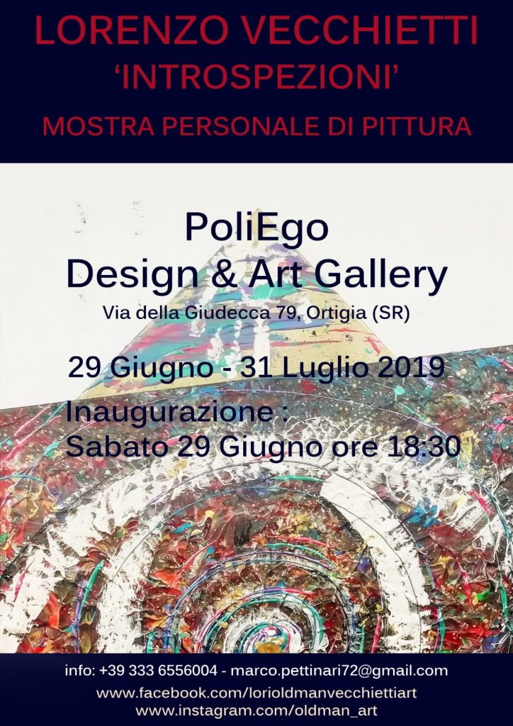 Siracusa - Dal 29 giugno al 31 luglio la PoliEgo Design & Art Gallery di via della Giudecca 79 a Ortigia ospiterà “Introspezioni”, una mostra di quadri di un giovane talento proveniente dalla provincia di Verbano-Cusio-Ossola, Lorenzo Vecchietti, che esporrà per la prima volta in Sicilia (inaugurazione sabato 29 ore 18,30). L’allestimento della mostra è curato dal gallerista Marco Pettinari e dal critico e storico dell’arte Egidio Maria Eleuteri.