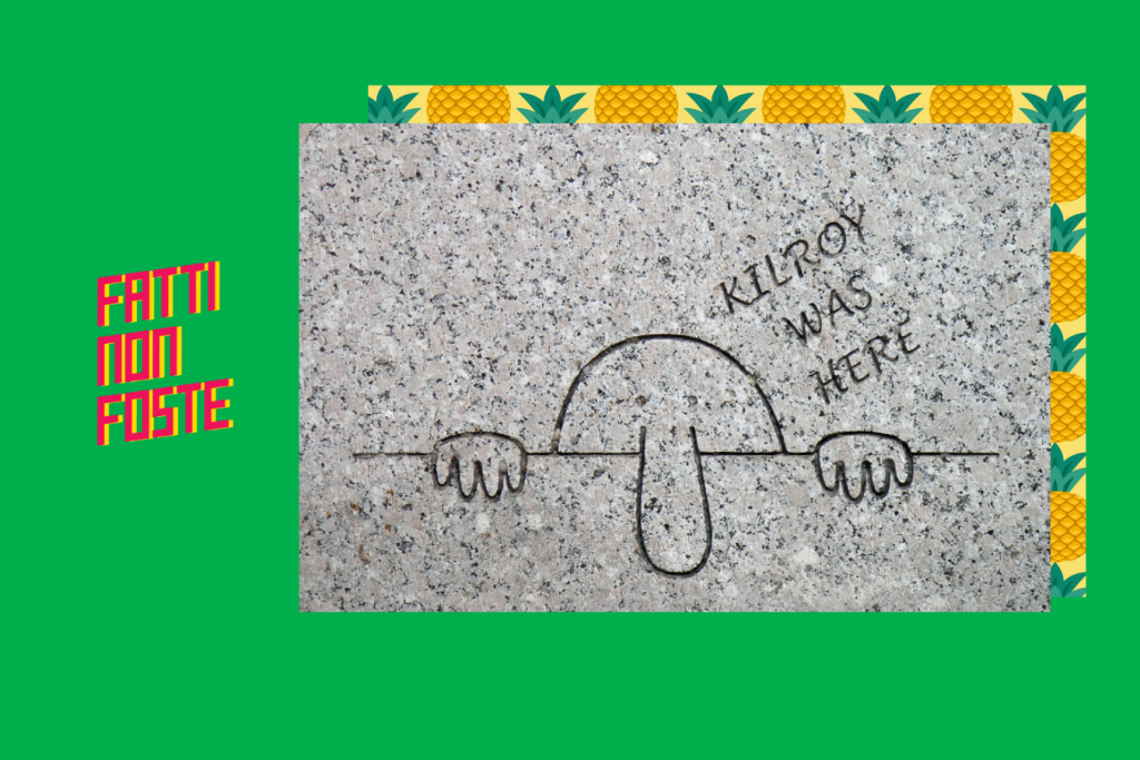 Oggi lo definiremmo "contenuto virale" o "meme", ma negli anni della seconda guerra mondiale, pur senza internet, “Kilroy was here”, il graffito raffigurante un omino pelato con un naso imponente e la scritta che segnava il suo passaggio, è riuscito a diventare una leggenda. Prima di Banksy e dei suoi ratti.