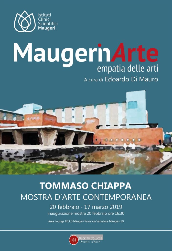 L'arte nei luoghi di cura non solo abbellisce gli spazi ma migliora l'umore e il benessere dei degenti, generando stati d'animo positivi che possono contribuire alla loro guarigione. È la filosofia sottesa a "Maugeri in Arte", una rassegna di mostre e concerti organizzate nell'Istituto di ricovero e cura a carattere scientifico Maugeri. Dal 20 febbraio al 17 marzo l'area lounge dell'ospedale ospiterà una mostra di dipinti dell'artista palermitano Tommaso Chiappa.