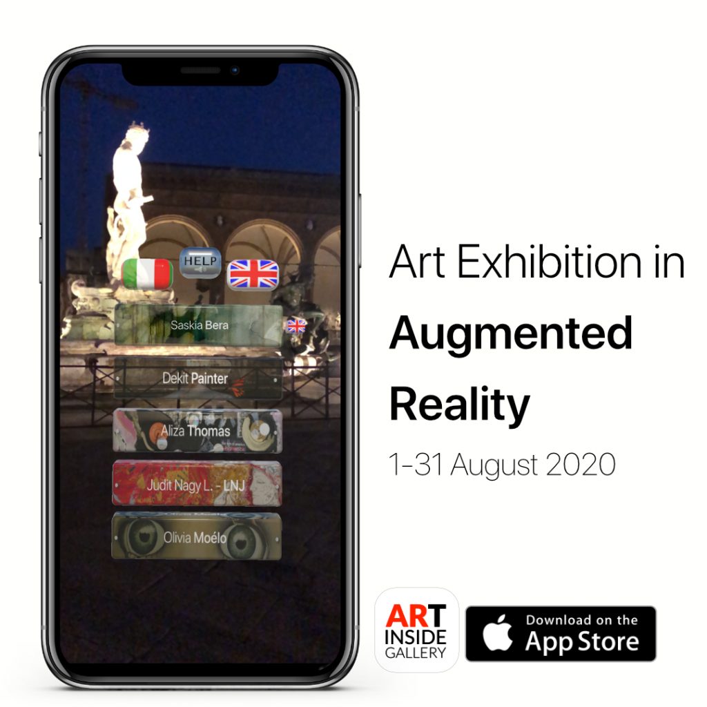 Dal 1 al 31 Agosto 2020, gli artisti Saskia Bera (Germania), Dekit Painter (Francia), Aliza Thomas (Israele, Olanda), Judit Nagy L. - LNJ (Slovacchia), Olivia Moélo (Francia), espongono le loro opere all’interno di Artinside Gallery, la prima galleria d’arte senza pareti, in realtà aumentata.