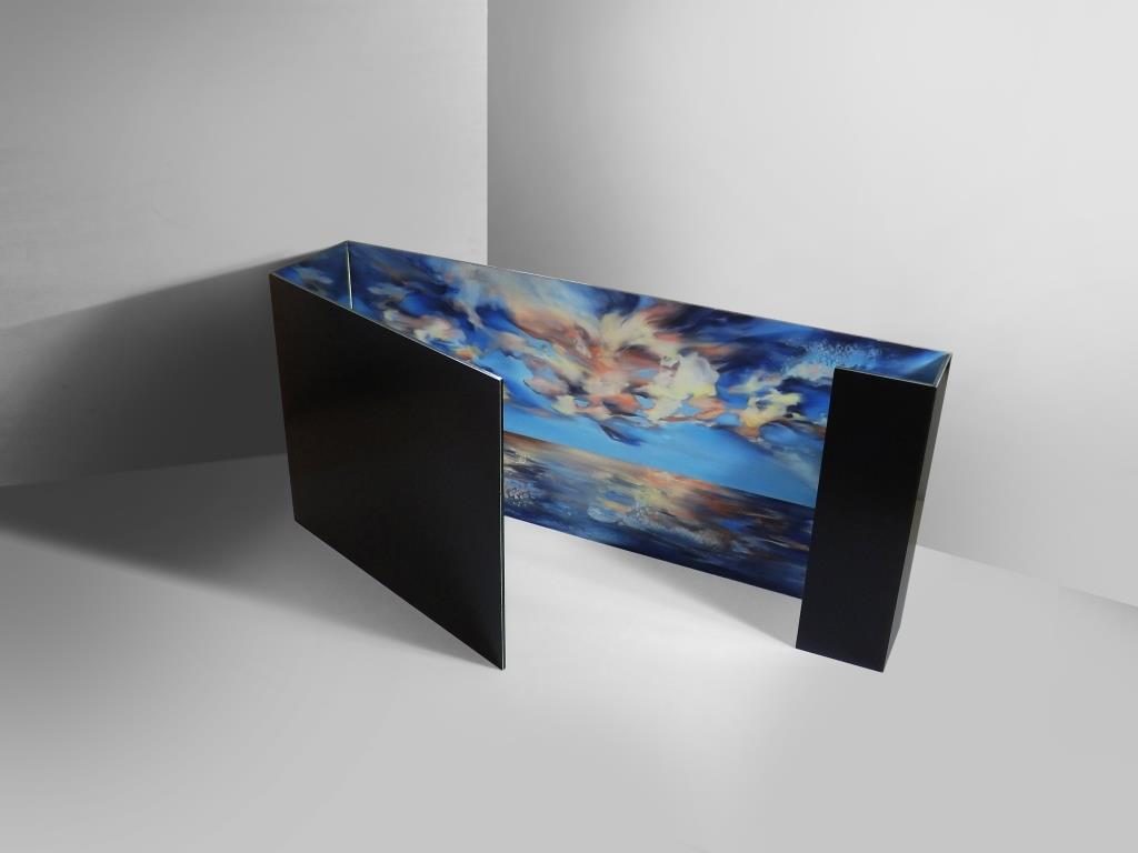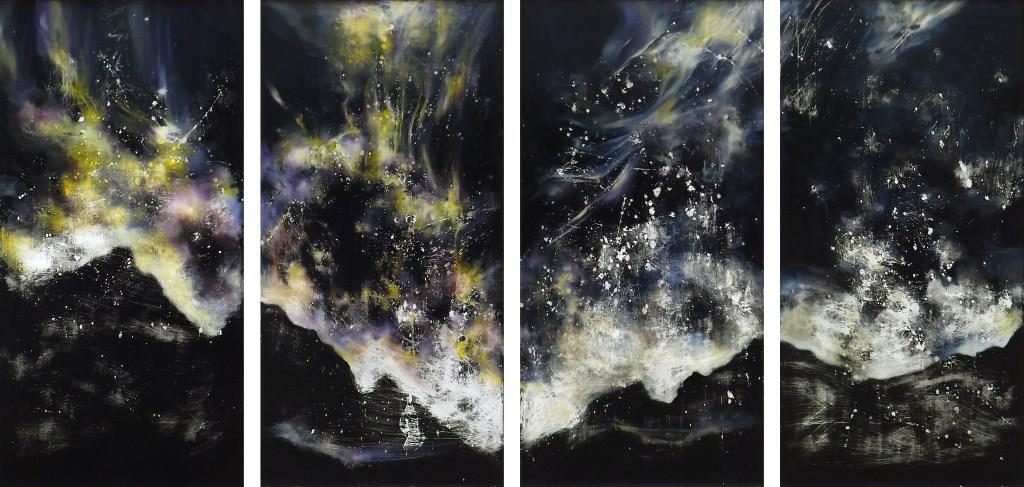 Marjan Fahimi si immette in questa linea di profondo rinnovamento dell’arte contemporaneo persa portando in dote il concetto di sintesi tra l’essere astratto e il raccontare figurativo in uno dei tanti supporti dove vivono e si muovono le sue opere. L’artista è riuscita ad arrivare al complicato sunto di un doppio racconto tra astratto e figurativo, tra il disegno in apparenza veloce di idrometeore e le emozioni che queste masse atmosferiche trasmettono all’intelletto dell’artista. Nuvole animate di forme evolute attraverso un’uso sapiente della materia, talvolta accentuata e tal volta diluita, che parlano di fisicità tangibile unita ad una multiforme dimensione spirituale.