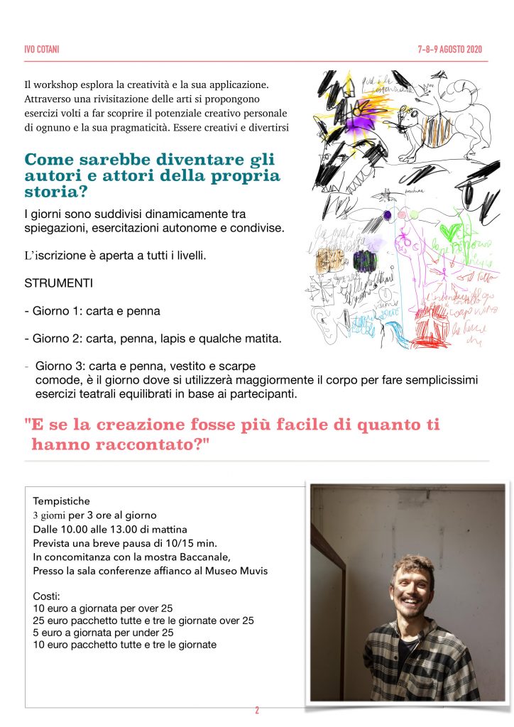 Personale dell'artista Ivo Còtani, per la serie di Flash Exibition proposte dal Premio Centro e curate da Paolo Berti , include il workshop "L'Arte dell'Oltre", aperto a tutti e tenuto dall'artista oltre a una serie di pannelli dipinti che esaltano la allegrezza e la fantasia, in omaggio alla terra dei vini della teverina.