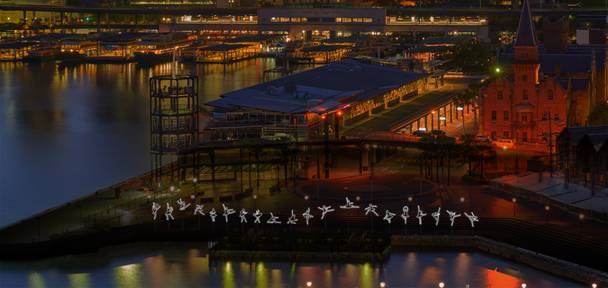 L'opera d'arte riproduce, in una sequenza di luci delle 20 sagome, il ciclo ipnotico di un balletto, in sincrono con la sua colonna sonora.