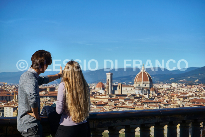 FIRENZE. Indubbiamente la città che suscita più emozioni, arrivati in cima a Piazzale Michelangelo ho visto molte persone piangere vedendo la città dall’alto. È una città che io ho immaginato tanto, fin da piccolo quando vedevo Firenze in Televisione rimanevo pietrificato, la Maestosità della Cupola Del Brunelleschi, unica al mondo. Io a Firenze ho creduto molto sul fatto che la “Bellezza” fosse contaminata tanto dall’immaginazione. Il percorso per arrivare in cima al Piazzale Michelangelo è abbastanza “faticoso” diciamo. La parte finale è una scalinata ripida, con lunghi gradini, in mezzo alla scalinata si vede gente che si ferma a riposare un attimo, a riprendere fiato. Durante il percorso però la città non si vede, quindi non ti rimane che immaginare ciò che accadrà una volta arrivato in cima, ciò che vedrai. Il cammino è lento, hai tutto il tempo per crearti quell’immagine che vorresti vedere, pensi a ciò che hai visto fino ad ora, ciò che hai visto in televisione, su internet e intanto cammini.