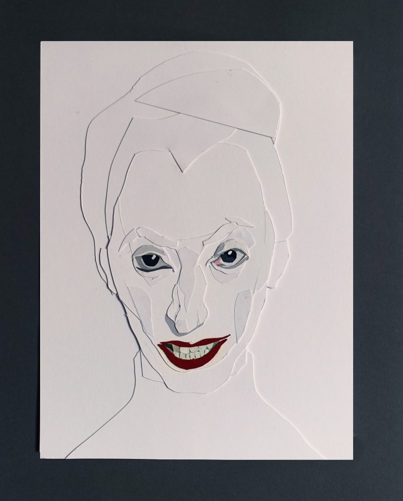 La moda, il teatro, il cinema francese e americano degli anni ’50, le suggestioni accademiche dell’espressionismo tedesco di Kirchner e Nolde e la passione per l’arte fiamminga, rappresentano il milieu ideale per questi volti alla Norma Desmond in “Viale del Tramonto”. Sullo sfondo, un’altrettanto sottile satira sociale che ricorda la crudele ironia della serie newyorkese “The party” di Tomi Ungerer.