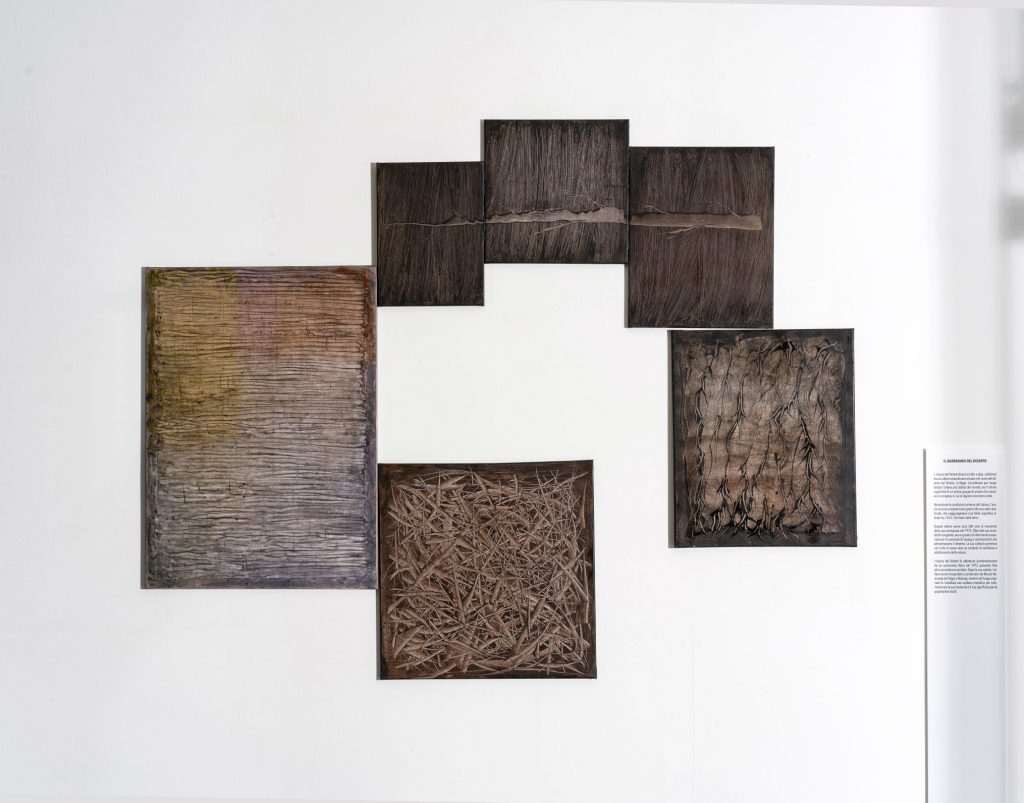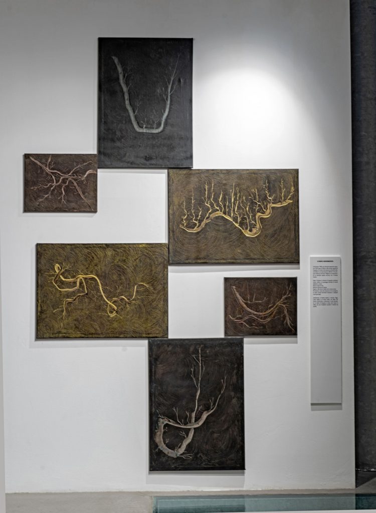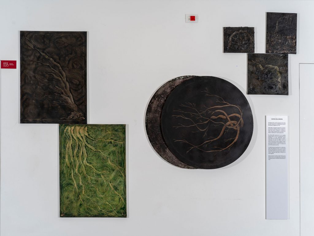 Tra le serie esposte, spicca quella sugli Hibakujumoku , gli alberi sopravvissuti alle bombe atomiche di Hiroshima e Nagasaki. Giacomucci ne rappresenta la resistenza con un'installazione pittorica in cui il nero profondo del fondo contrasta con la luce della vita che riaffiora. Un'altra serie è dedicata al bambù , pianta simbolo di adattabilità, raffigurata in un processo pittorico astratto che ne restituisce la vibrazione e la memoria visiva.