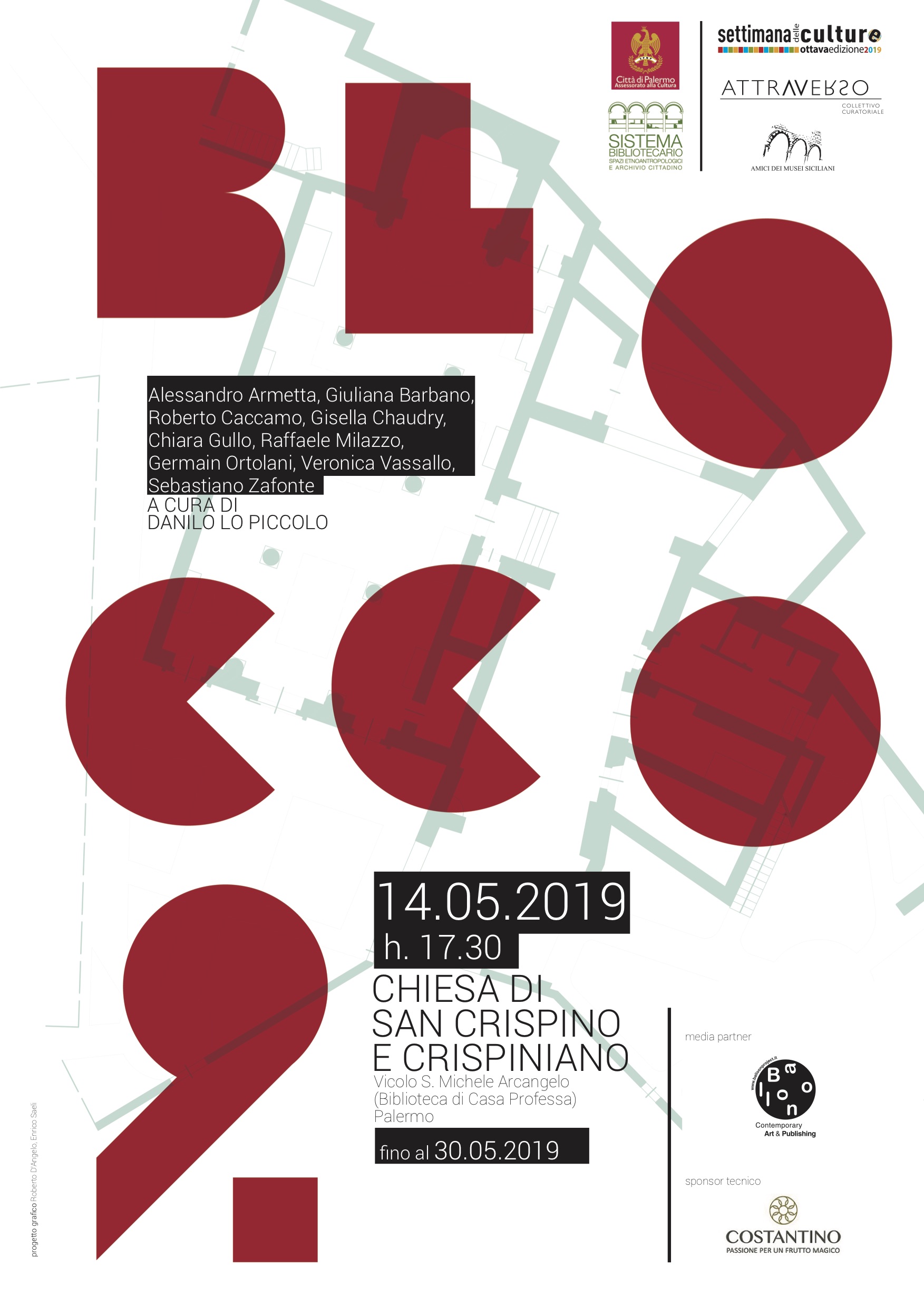 Si inaugura il 14 maggio alle ore 17.30, presso la Chiesa di San Crispino e Crispiniano a Palermo, il group show BLOCCO| 9, composto da nove artisti emergenti tra i quali: Alessandro Armetta, Giuliana Barbano, Roberto Caccamo, Gisella Chaudry, Chiara Gullo, Raffaele Milazzo, Germain Ortolani, Veronica Vassallo, Sebastiano Zafonte.