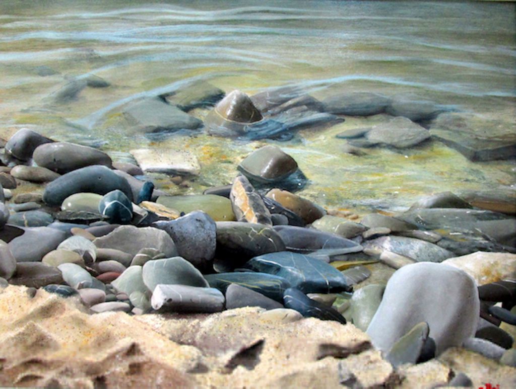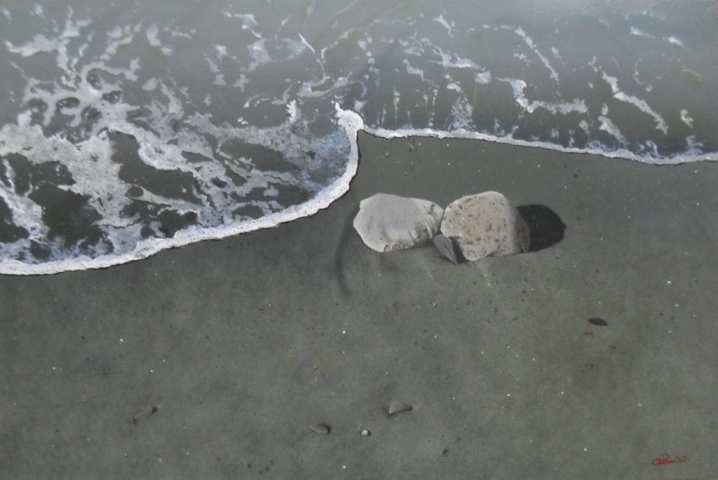 I suoi quadri nascono da un immenso, atavico, incontrollabile amore per il mare. Per questo la tecnica pittorica è semplice e manuale. La tecnologia distruggerebbe quella poesia e quei silenzi dai quali nascono le sue opere. Le marine, le barche, le pietre, le onde non hanno bisogno di nulla di artificiale per essere dipinte, occorre solo affidarsi all'istinto e al colore. E alla libertà.