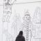 Una grande figura sciamanica depositaria di conoscenze, valori e saperi (rappresentazione allegorica di Giovanna Barottazzi, che ha insegnato alle fondatrici di Rilievi l’arte del ricamo artistico) che, srotolando una preziosa tela ricamata apre a sette personaggi – allegoria delle sette giovani donne che hanno fondato l’azienda - la conoscenza del mondo magico del sapere manuale.