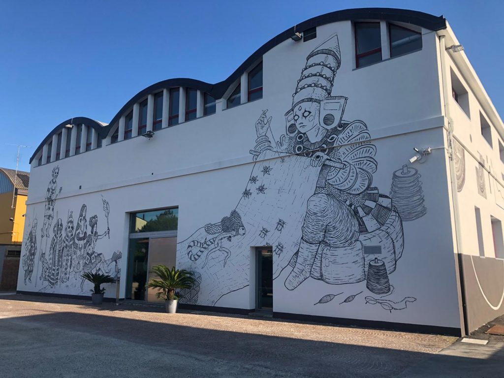 Guido Volpi, invece, realizza un grande murale sulla facciata principale dell’edificio, celebrando la creatività femminile e la storia dietro la nascita dell’Azienda.