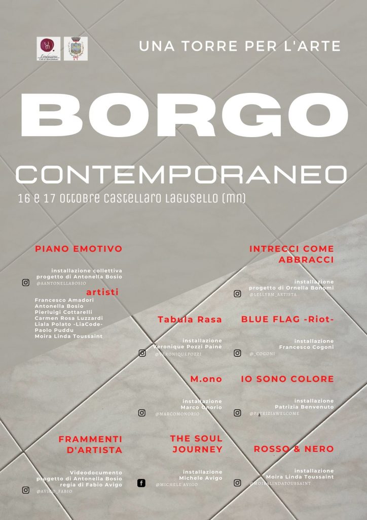 L'evento di Borgo Contemporaneo ed. III, vedrà il suo svolgersi in presenza nei giorni 16 e 17 ottobre con la partecipazione di progetti collettivi specifici per l'evento e alcune installazioni realizzate dagli artisti in integrazione con gli spazi.