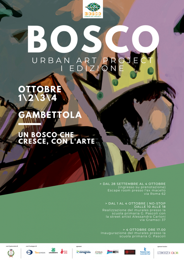 Bosco - Urban Art Project ha il fine di rendere Gambettola un punto nevralgico per una serie di attività che pongono al centro natura e cultura, rigenerazione urbana e arte, un rapporto importante che deve essere sentito prima di tutto come esigenza condivisa e vissuto in maniera partecipativa.