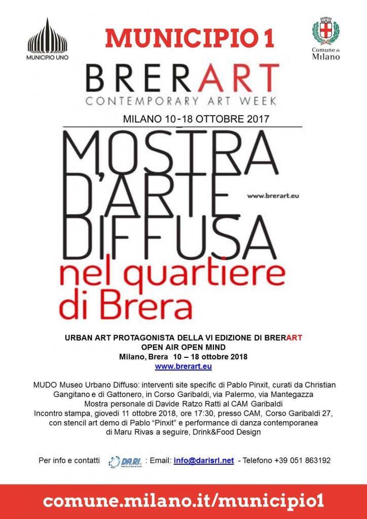 BRERART è la mostra d’arte contemporanea diffusa nel territorio di Brera a Milano che, con una serie di iniziative artistiche, anima il quartiere con l’arte in location non convenzionali.