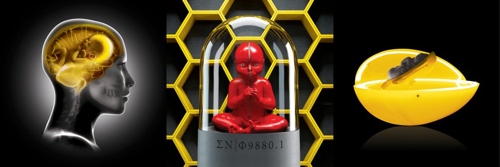 Secondo Marzia Ratti la creazione è un incontrollabile processo dinamico tra scienza e evoluzione, un treno lanciato a potentissima velocità, inarrestabile e capace di trasformare repentinamente le sorti dell’umanità. La sua arte è un viaggio tra l’incubo fantascientifico e il miracolo tecnologico e, prima che la scienza compia i dovuti esperimenti e la specie umana stravolga la propria evoluzione, Marzia Ratti simula una proiezione immaginaria con grande lucidità e talento, dando forme al nuovo uomo senza maschere e senza colpa.
