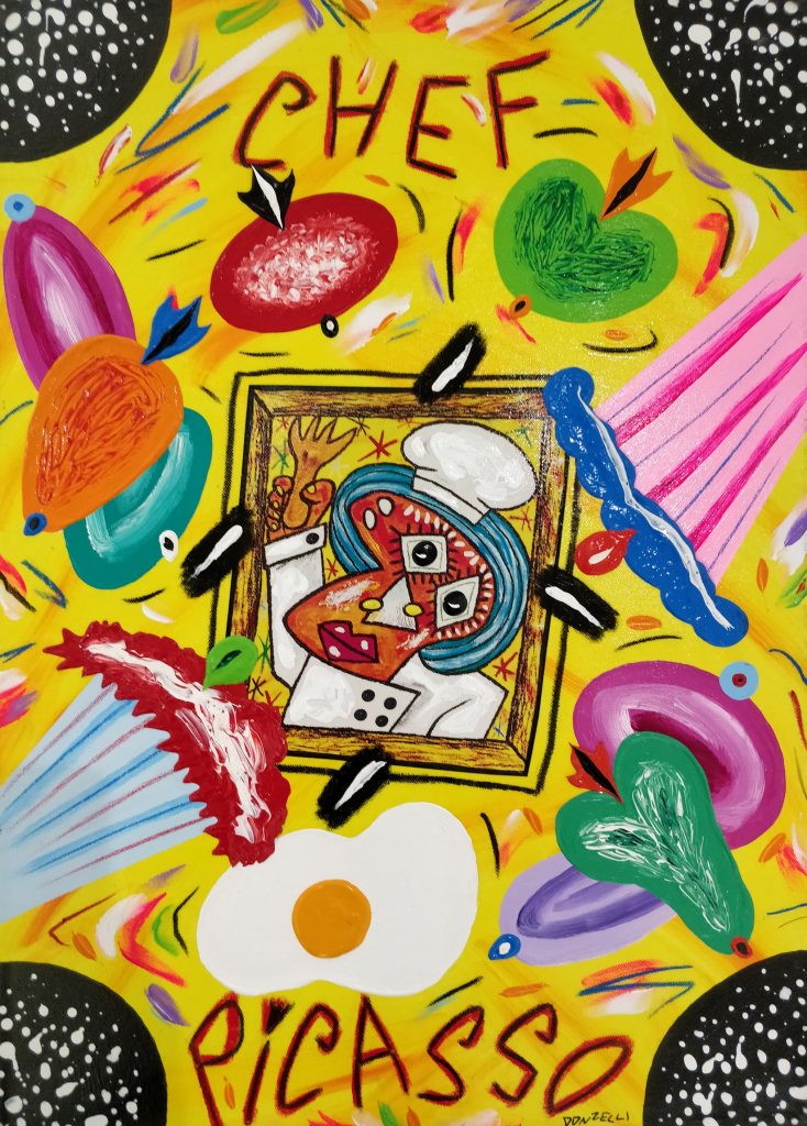 ricominciamo la nostra attività espositiva presentandovi un allestimento dedicato interamente alle opere su tela di Bruno Donzelli (Napoli 1941) la cui esuberanza coloristica e la maestria citazionista rappresentano di sicuro un valido contraltare a quest’ultimo periodo trascorso nel “grigiore”.