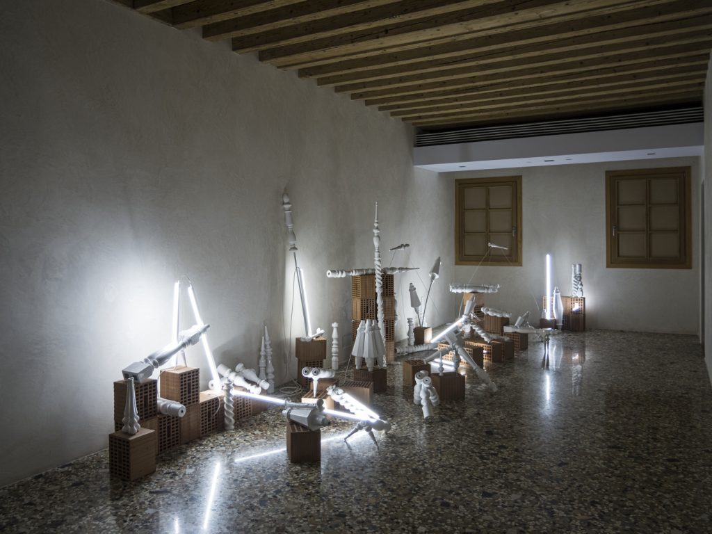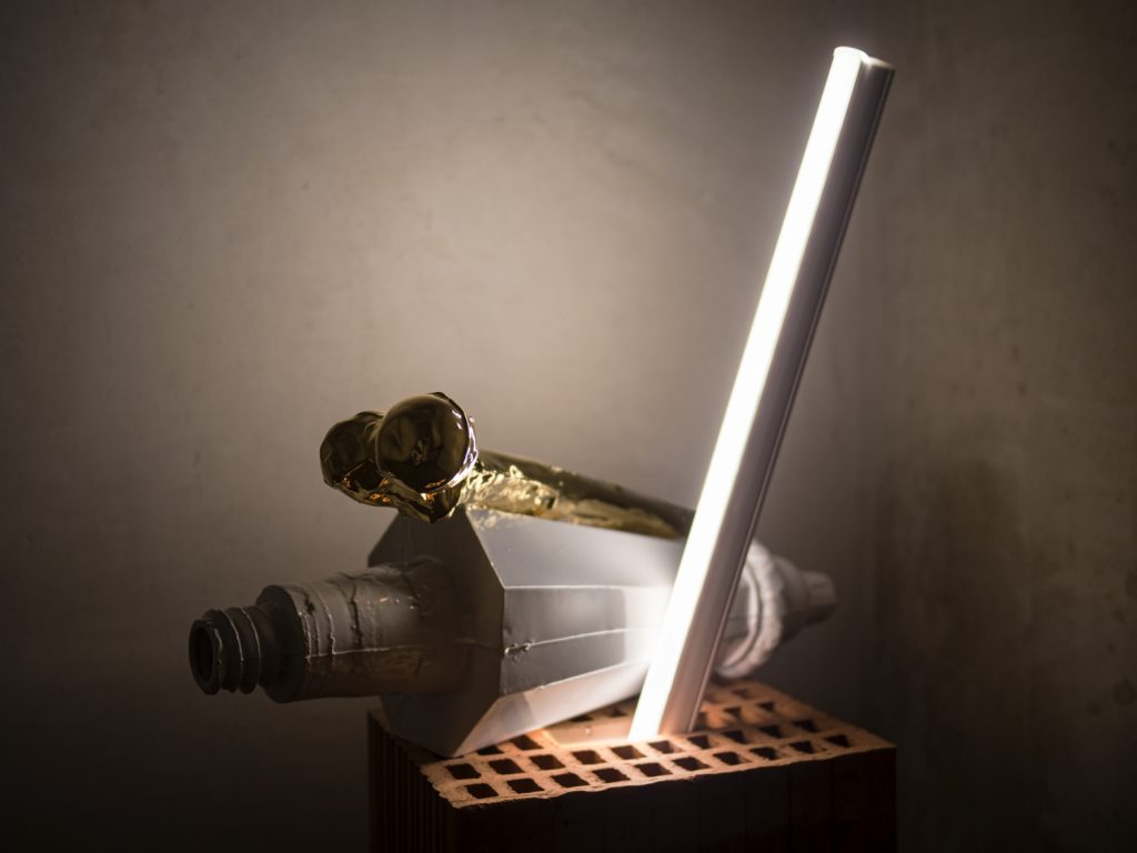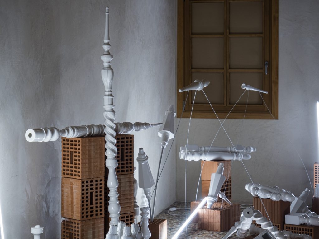 La mostra esprime uno spaccato concreto di questo particolare anno dove l’artista materializza, in un mix di sentimenti personali e collettivi, tutta la tensione dei legami e della rottura con la tradizione, con il semplice scopo di edificarne una nuova e diversa. Iconica l’immagine delle ossa rotte assimiliate visivamente alle gambe dei tavoli, intese come “arti” spezzati, da ricostruire con canoni estetici contemporanei.