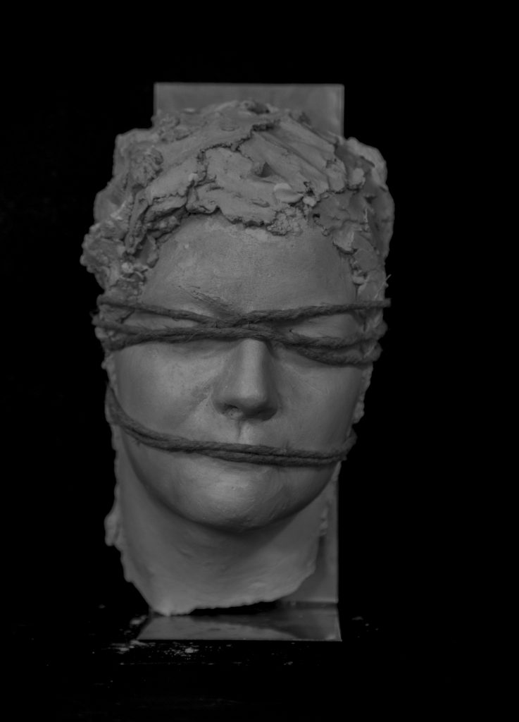 Dalle parole dell’artista: “La figura disfatta ci ricorda anche l’inutilità delle guerre e delle oppressioni poiché dopo pochi anni di passaggio sulla Terra, vinti e vincitori, oppressi e oppressori, alla fine tornano alla terra, diventando cenere e polvere del Mondo. Per questo la scultura è nata per essere distrutta. Questa disfatta è metafora di ogni altra disfatta, come di una predestinazione alla quale prometeicamente ci opponiamo”.