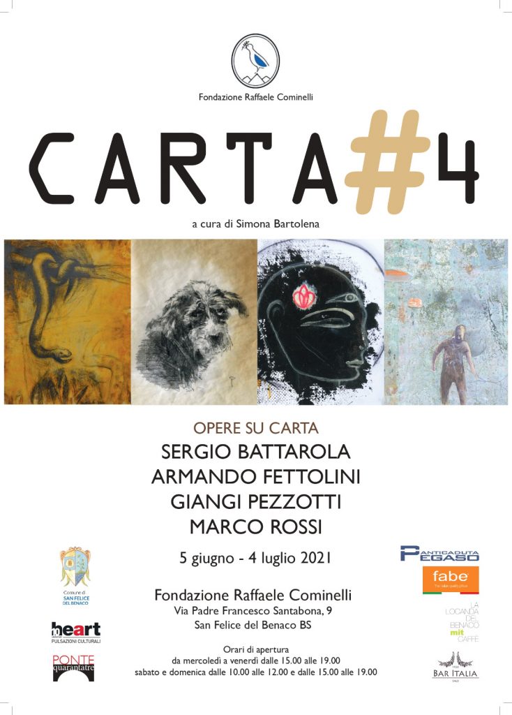 Dopo più di un anno di chiusura riapre al pubblico la FONDAZIONE COMINELLI, spazio espositivo ricavato all'interno di un palazzo del '600 immerso nella natura a Cisano, una piccola frazione di San Felice del Benaco. Sabato 5 Giugno alle ore 18,00 inaugura la mostra CARTE #4 ( Battarola, Fettolini, Pezzotti, Rossi) a cura di Simona Bartolena, una mostra di arte contemporanea che ha come tema la carta e permetterà ai turisti oltre che di ammirare le opere esposte, di introdursi nelle stanze e nelle corti esclusive della Fondazione, una piccola ma preziosa perla del territorio.