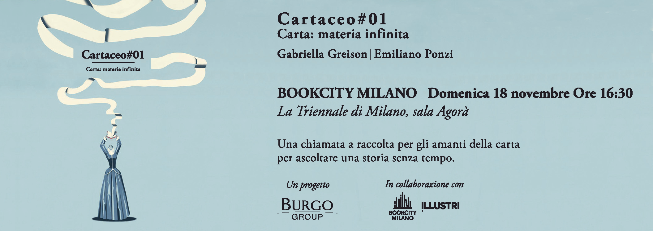 Burgo Group S.p.A., uno dei principali produttori europei di carte grafiche e speciali, partecipa a BookCity Milano 2018 con il progetto “CARTACEO #01 CARTA: MATERIA INFINITA”, una storia per gli amanti della carta raccontata attraverso un evento che avrà luogo domenica 18 novembre alle ore 16:30, presso La Triennale di Milano, Sala Agorà.