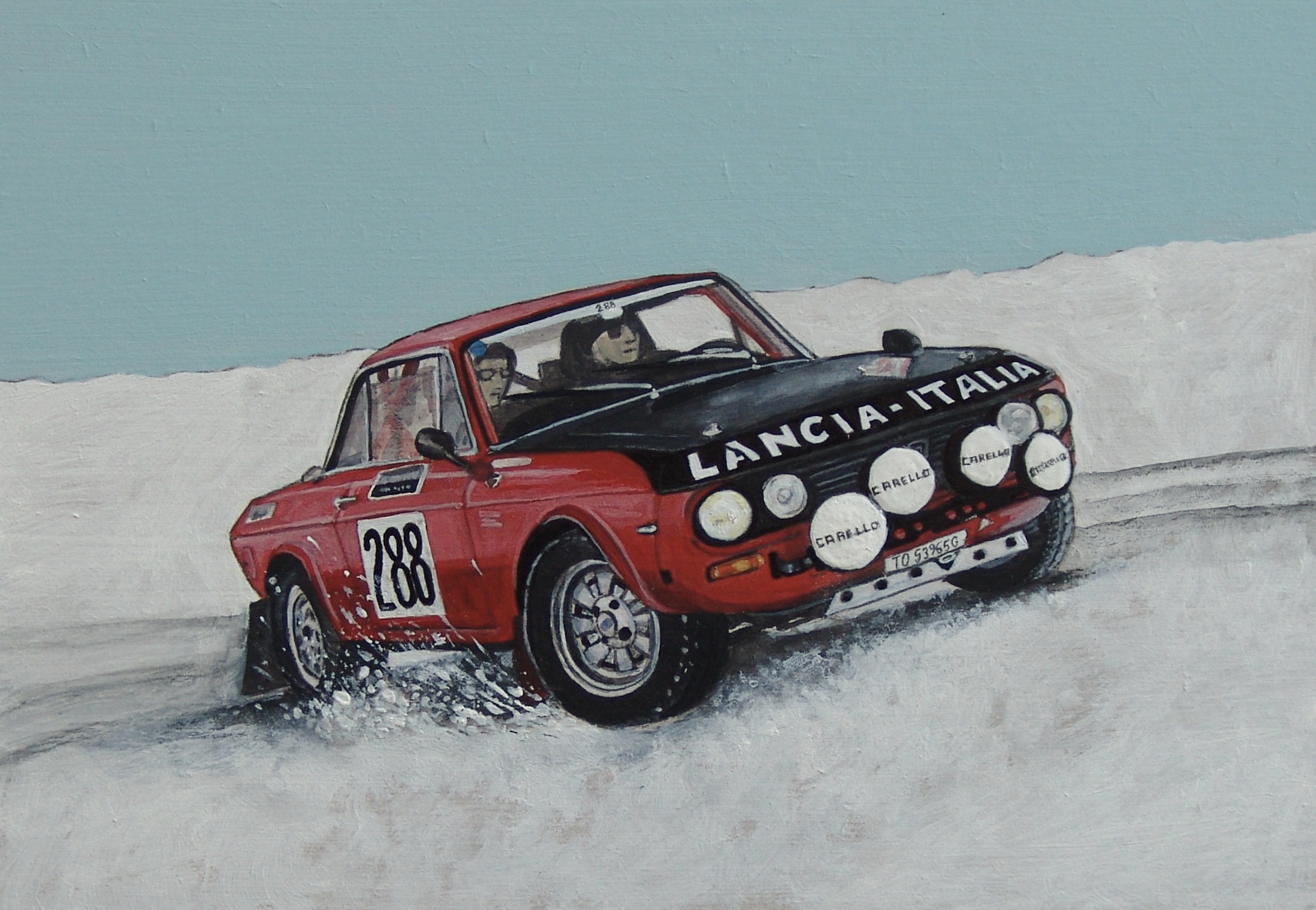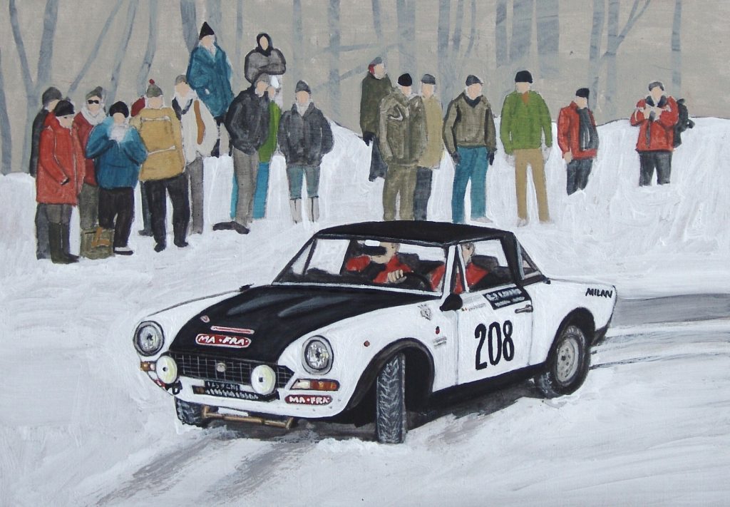 Nando Crippa ha realizzato per l’occasione una trentina di piccoli disegni inediti dipinti su tavola, ciascuno ritrae una delle vetture selezionate per partecipare a questa manifestazione icona del rallysmo internazionale.