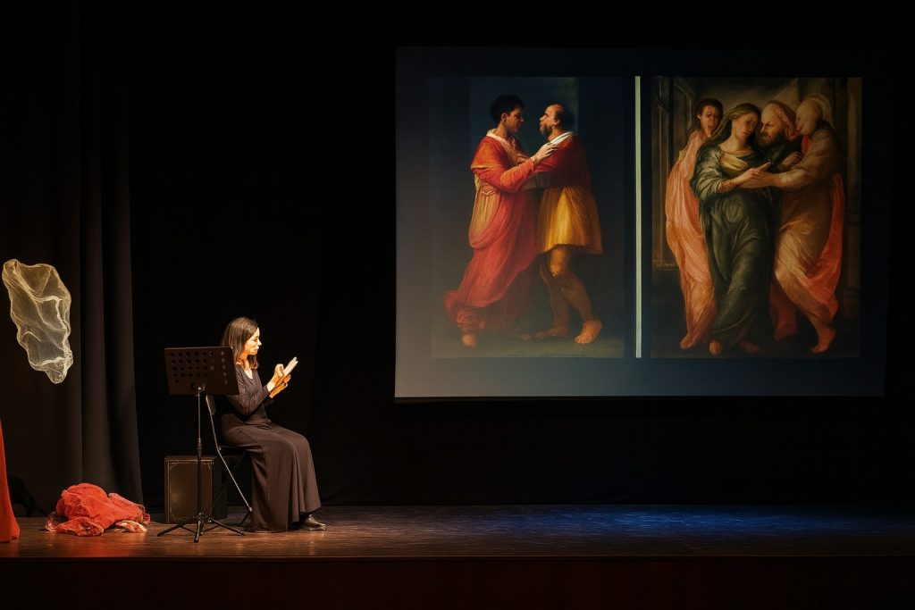 Al centro, Frida emerge nelle sue molteplici sfaccettature: artista ribelle, moglie fragile, donna ferita e icona. Le sue lettere e i suoi diari, letti da Fioretta Mari con ironia e profondità, si fondono alla musica dal vivo di Giovanna Famulari e Gianluca D’Alessio, alle coreografie di Anna Gargiulo e Francesco Bax, alle creazioni visive di Ombretta Luciani.