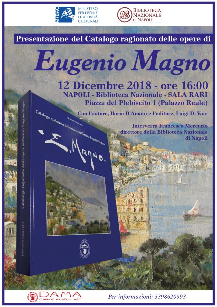 Dopo più di tre anni di lavoro da parte del Museo DAMA e dell’Archivio Eugenio Magno è stato finalmente realizzato un catalogo ragionato delle opere del Maestro Eugenio Magno, Edito dal Daphne Museum, che sarà presentato mercoledì 12 dicembre ore 16,00 nella prestigiosa Sala Rari della Biblioteca Nazionale di Napoli.