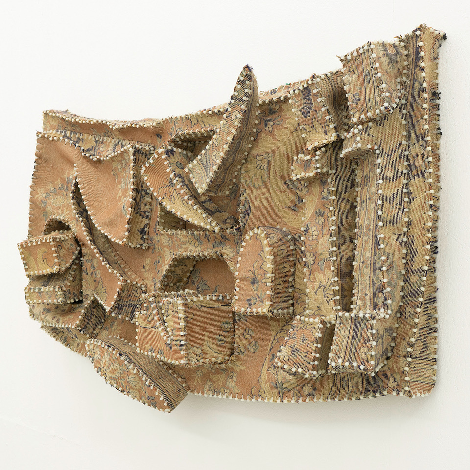 In mostra opere recenti inedite e site specific dell’artista, molte delle quali realizzate con tappeti di recupero di epoca sovietica, in dialogo con i rilievi architettonici medioevali della Basilica. Grosse cuciture connettono la materia tessile che acquisisce volume scultoreo e viene modellata nel creare un alto rilievo contemporaneo astratto. Il retro del tappeto diventa il fronte dell’opera come gesto sprezzante di demistificazione che, per il processo, ci ricorda in pittura la “sprezzatura” degli espressionisti astratti americani o alcune opere di Mario Schifano.