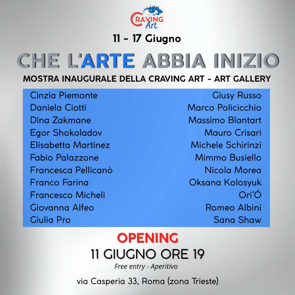 Con questa mostra, letteralmente Craving Art apre finalmente le porte della sua nuova casa a Roma, un luogo nato per vivere l’arte a 360 gradi.