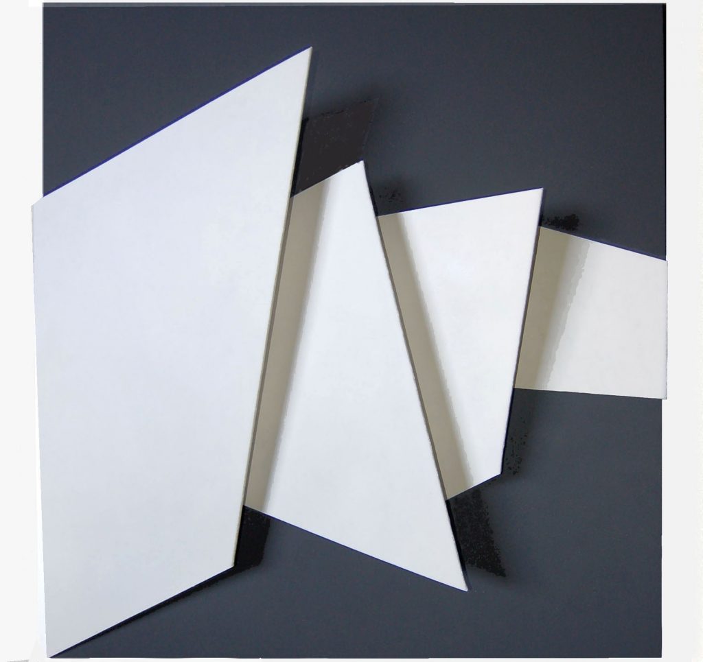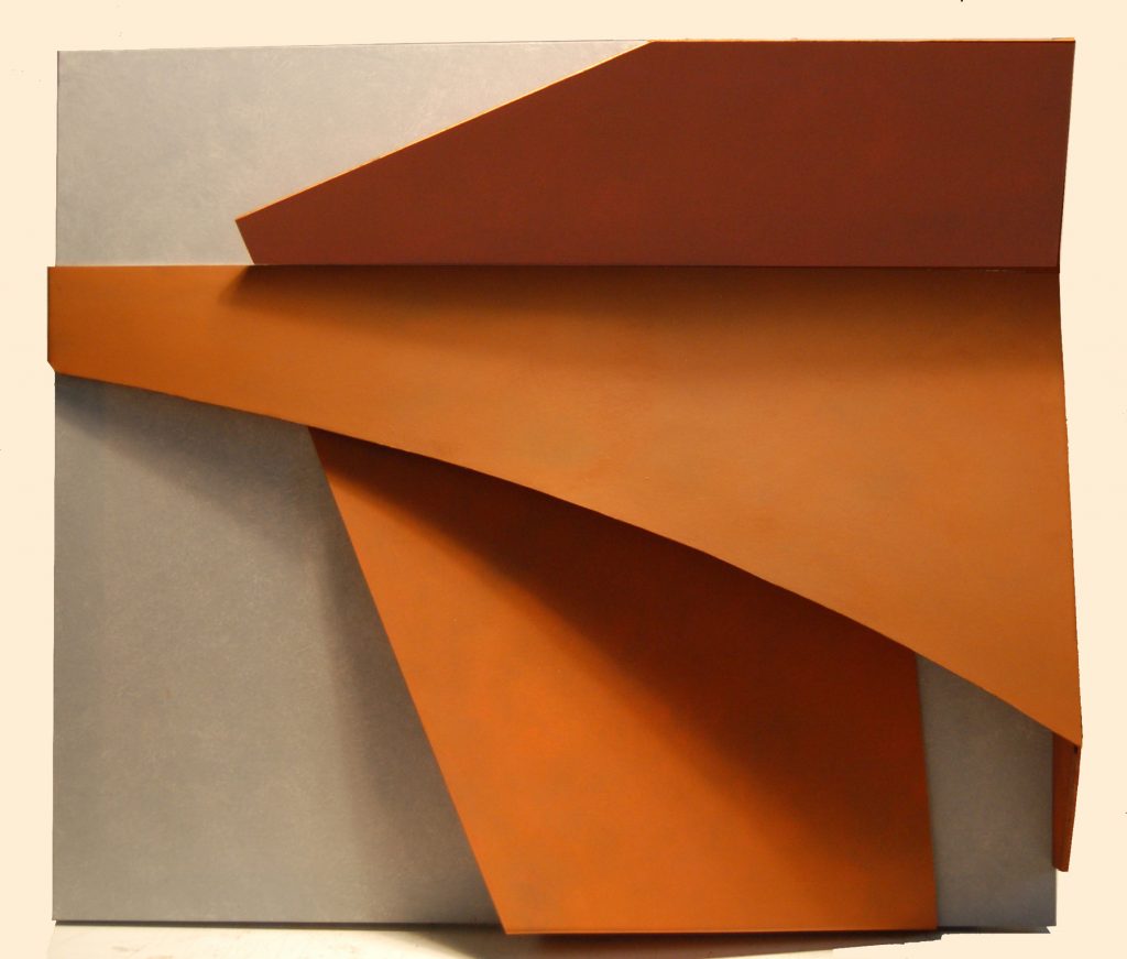 Sono opere che possiamo definire “musicali”in quanto, la particolare tridimensionalità che Lucio Perna utilizza sulle tele, crea un movimento anche fisico dell’aria intorno alle forme, che “suonano” quindi agli spettatori più sensibili le immagini e i colori che l’occhio invece percepisce.