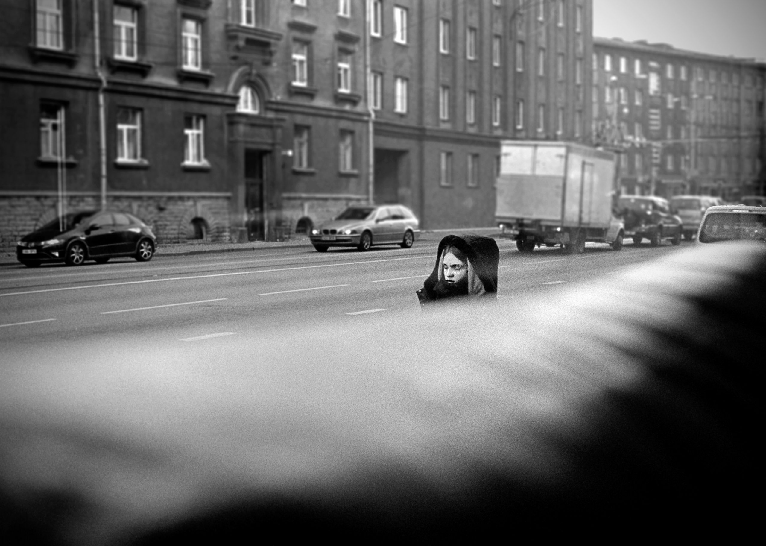 “A volte sono semplicemente i muri a parlarmi con i loro contrasti, o il selciato calpestato dopo un giorno di pioggia. Osservo come si muovono le persone, mi soffermo sulle gambe, emblemi del passaggio del tempo.”