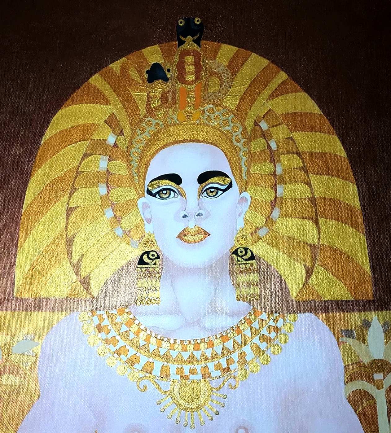 Le fonti antiche ci descrivono la regina come una donna di grandissimo fascino, dalla voce melodiosa, colta e conoscitrice di molte lingue straniere ed idiomi. Sedusse uomini di grande carisma come Cesare e Marco Antonio e riuscì a governare un paese vasto come l’Egitto e le sue province. Nei quadri di Mirella Ventura traspare tutto ciò, l’artista è riuscita a presentare l’aspetto sensuale ma anche ieratico della regina in opere arcaiche e moderne al tempo stesso.