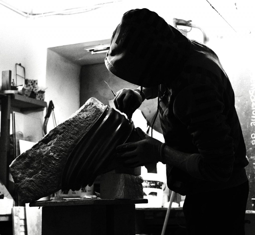 Già consacrato alla Biennale di Venezia del 2011, le sue opere sono ricercatissime ed hanno già abbondantemente superato i confini nazionali con esposizioni al Cairo, Amsterdam e New York, solo per citare alcuni degli appuntamenti dell’Artista per il 2018. L’origine di questo successo deriva dalla qualità della sue opere e dal loro specifico e innovativo linguaggio. Seguendo la grande tradizione materica dell’arte italiana, Cicciarella plasma la pietra con straordinari effetti tattici e luministici. I blocchi di pietra vengono così “fasciati” ed elegantemente modellati creando campi di forza e tensioni di grande impatto estetico e psicologico. Nel suo lavoro confluiscono sia la lezione della grande scultura italiana, sia le suggestioni della scultura contemporanea, sia lo spirito concettuale dell’avanguardia, da cui questo giovane artista si stacca con un precisa e preziosa cifra stilistica. Per la prima volta, le sue opere sono esposte a Messina ma il suo lavoro non è estraneo al territorio messinese. Infatti, recente è la partecipazione di Cicciarella al workshop internazionale “Trasformatorio”, tenutosi nel borgo di Giampilieri Superiore (Messina). Culminata, poi, nella realizzazione di una grande opera sul crinale del paese, dando vita ad una sorta di “staffa” che sembra reggere, con sinuosa eleganza, l’enorme peso della montagna. La presenza di questo artista all’apertura di COCCO costituisce motivo di orgoglio per lo staff che con Cicciarella inizia un prestigioso ciclo di artisti di livello internazionale le cui opere saranno fruibili presso i locali dello Studio d’Arte in via F. Todaro, n. 22. Catalogo in mostra.