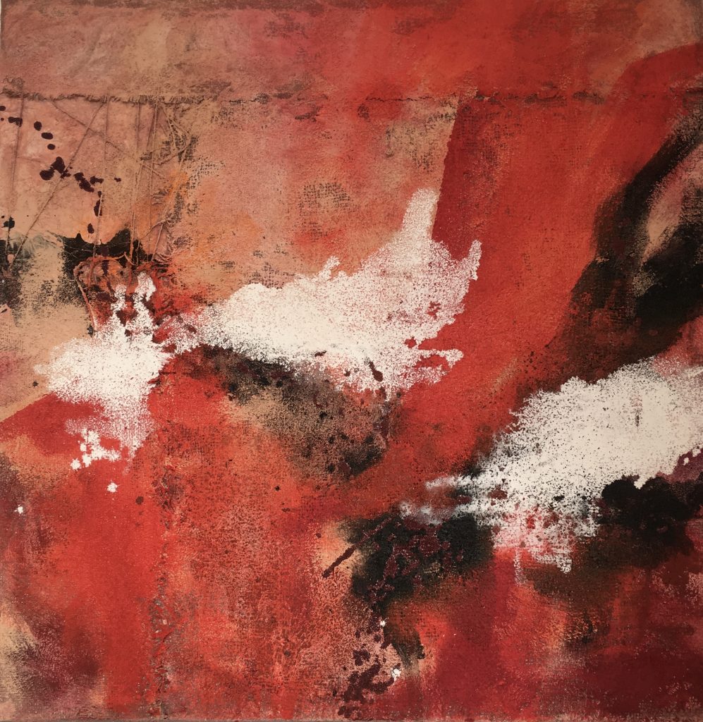 E non lo possiamo slegare da un’altra parola che mi viene in mente osservando i quadri di Chiara: energia. Le sue opere sono sempre un contrasto sapiente ed equilibrato di colori, di toni, di materia che insieme creano dei paesaggi in bilico «tra il dentro e il fuori», intimi e al tempo stesso cosmici, e danno vita a racconti sempre nuovi, sempre diversi: sarà un pensiero o un pianeta, un sentire o un toccare?”.