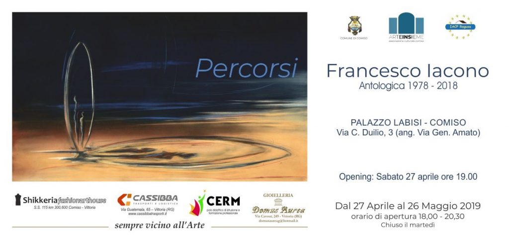 Mostra di Francesco Iacono a Palazzo Labisi, a Comiso. La mostra, dal titolo”Percorsi”, propone circa 150 opere (oli, pastelli, grafiche, sculture) che raccontano il percorso artisticodi Iacono dal 1978 al 2018. Tra le opere di spicco, i quadri ad olio realizzati con le mani, senza l’ausilio di pennelli, che hanno connaturato la sua produzione artistica fino agli inizi degli anni 2000, ma anche sculture, medio-rilievi in bronzo, installazioni. La mostra, organizzata dall’associazione “Arteinsieme”, sarà inaugurata il 27 aprile, alle 19. Resterà aperta fino al 26 maggio.